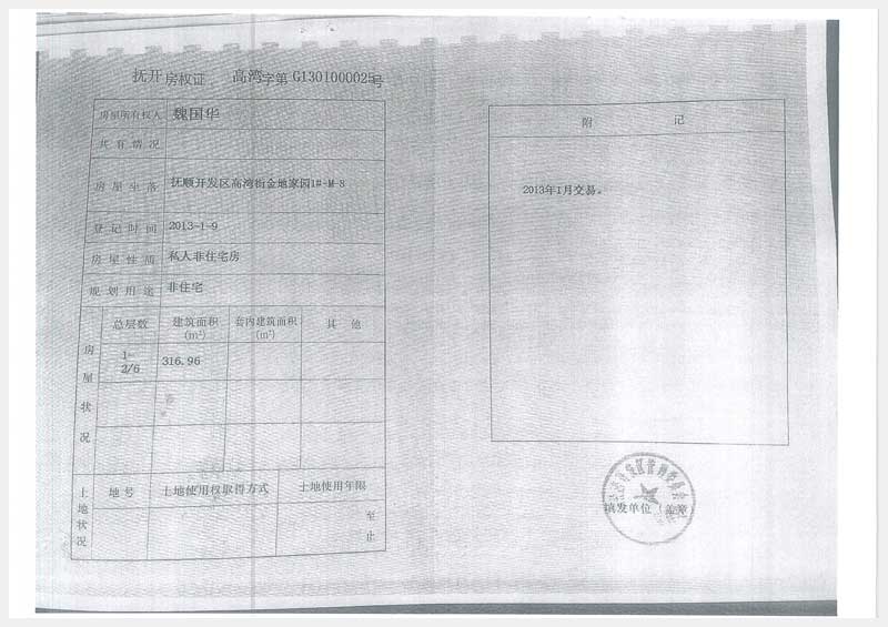 名稱:撫順開發(fā)區(qū)高灣街金地家園1#-M-8房產(chǎn) 面積:316.96㎡ 瀏覽次數(shù):1101