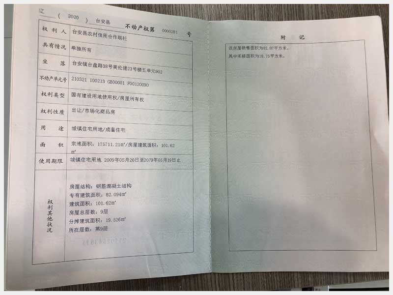 地址:臺安鎮(zhèn)臺盤路38號美倫堡 標(biāo)的號:141