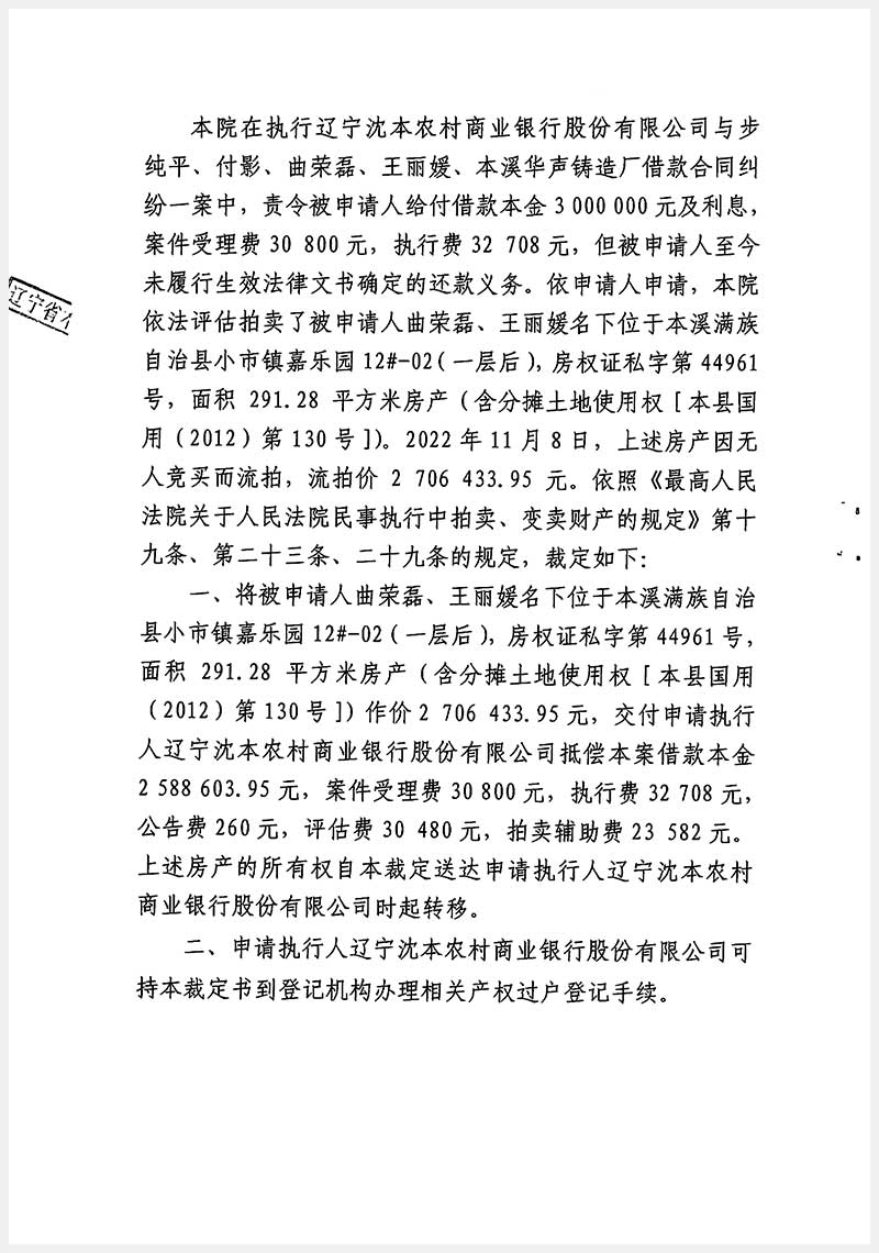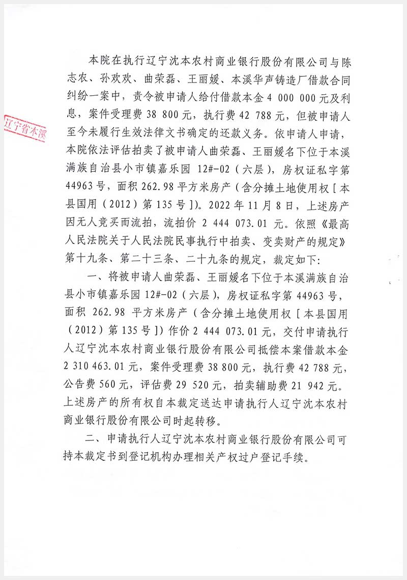 遼寧嘉和拍賣有限公司   咨詢熱線:024-22529012