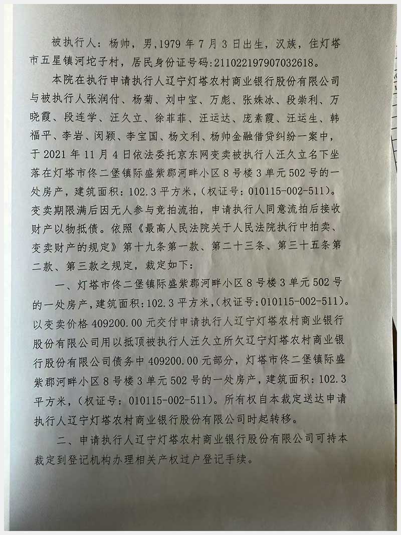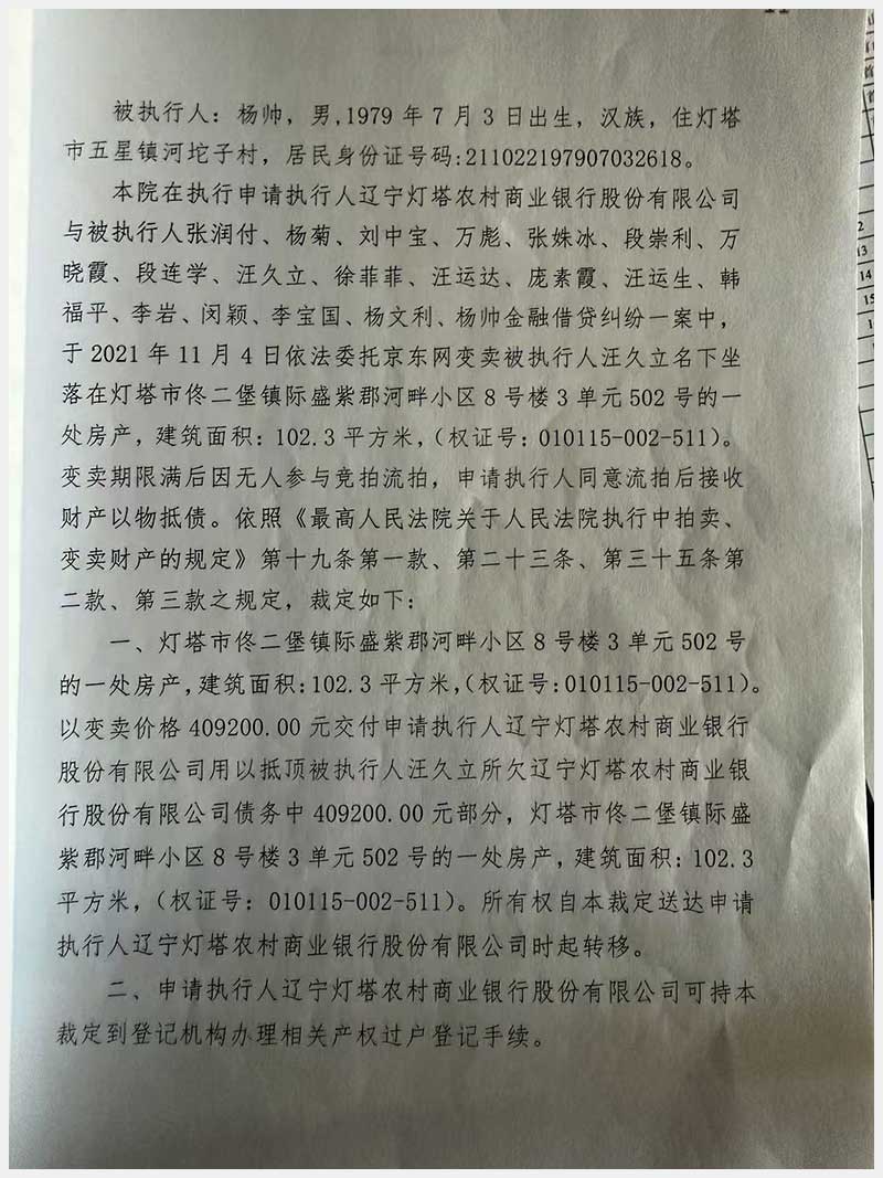 79號(hào) 燈塔市佟二堡鎮(zhèn)際盛紫郡河畔小區(qū)8號(hào)樓3單元502號(hào)房產(chǎn)