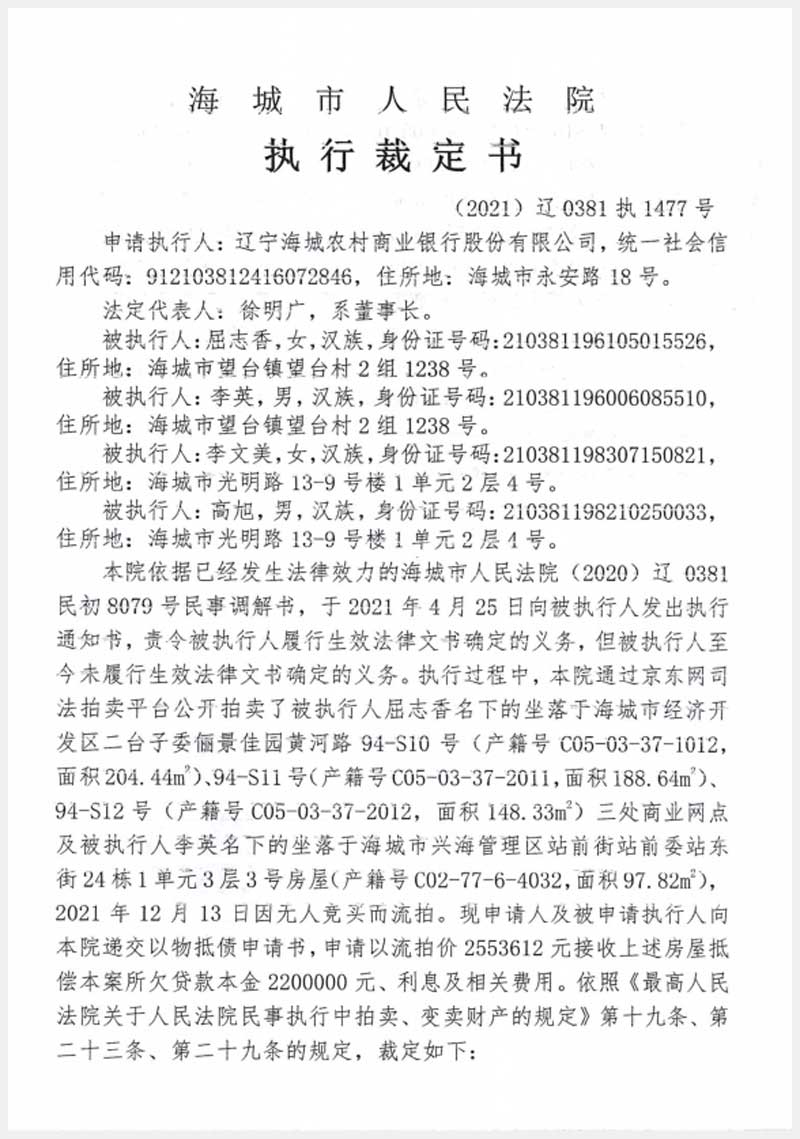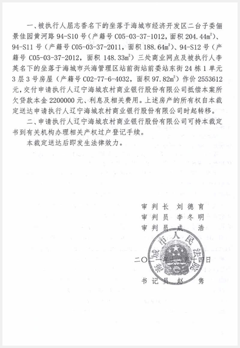 186-1號(hào) 海城經(jīng)濟(jì)技術(shù)開(kāi)發(fā)區(qū)二臺(tái)子委儷景佳園黃河路94號(hào)3處房產(chǎn)