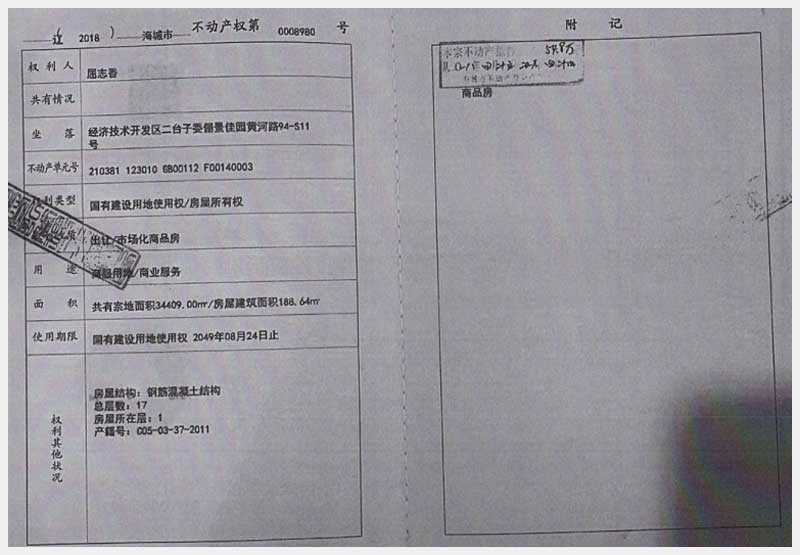 地址:海城經(jīng)濟(jì)技術(shù)開(kāi)發(fā)區(qū)二臺(tái)子委儷景佳園 標(biāo)的號(hào):186-1