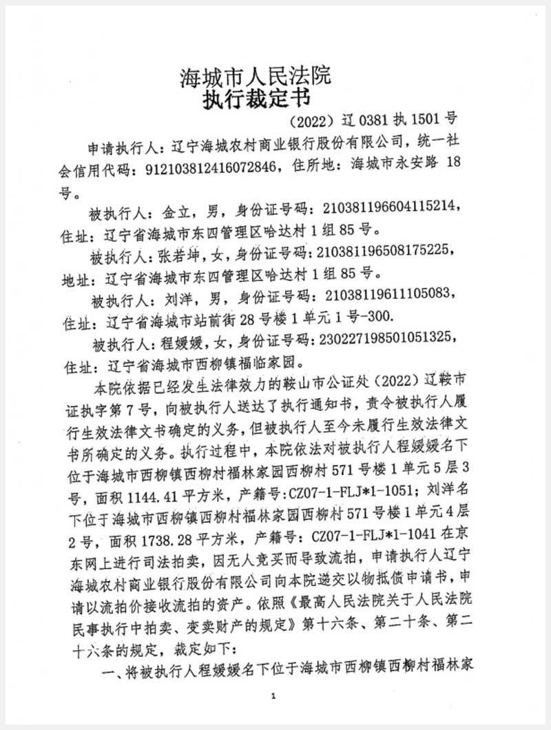 地址:海城市西柳鎮(zhèn)西柳村福臨家園西柳村571號 標(biāo)的號:213-2