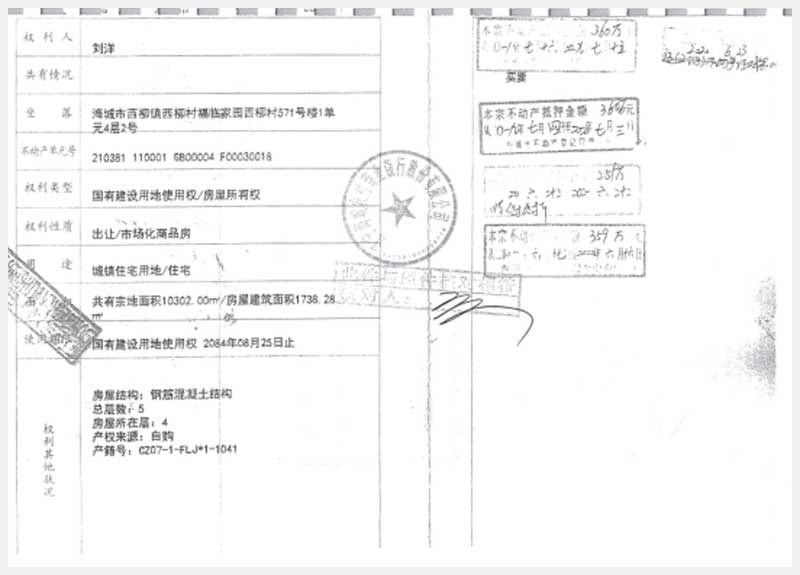 213-2號 海城市西柳鎮(zhèn)西柳村福臨家園西柳村571號樓1單元4層2號房產(chǎn)