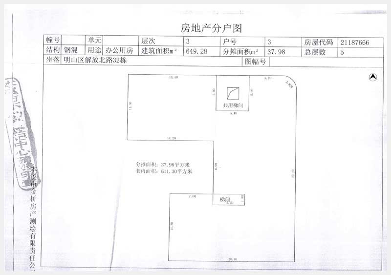 名稱:本溪市明山區(qū)解放北路32東3層房產(chǎn) 面積:649.28 ㎡ 瀏覽次數(shù):968