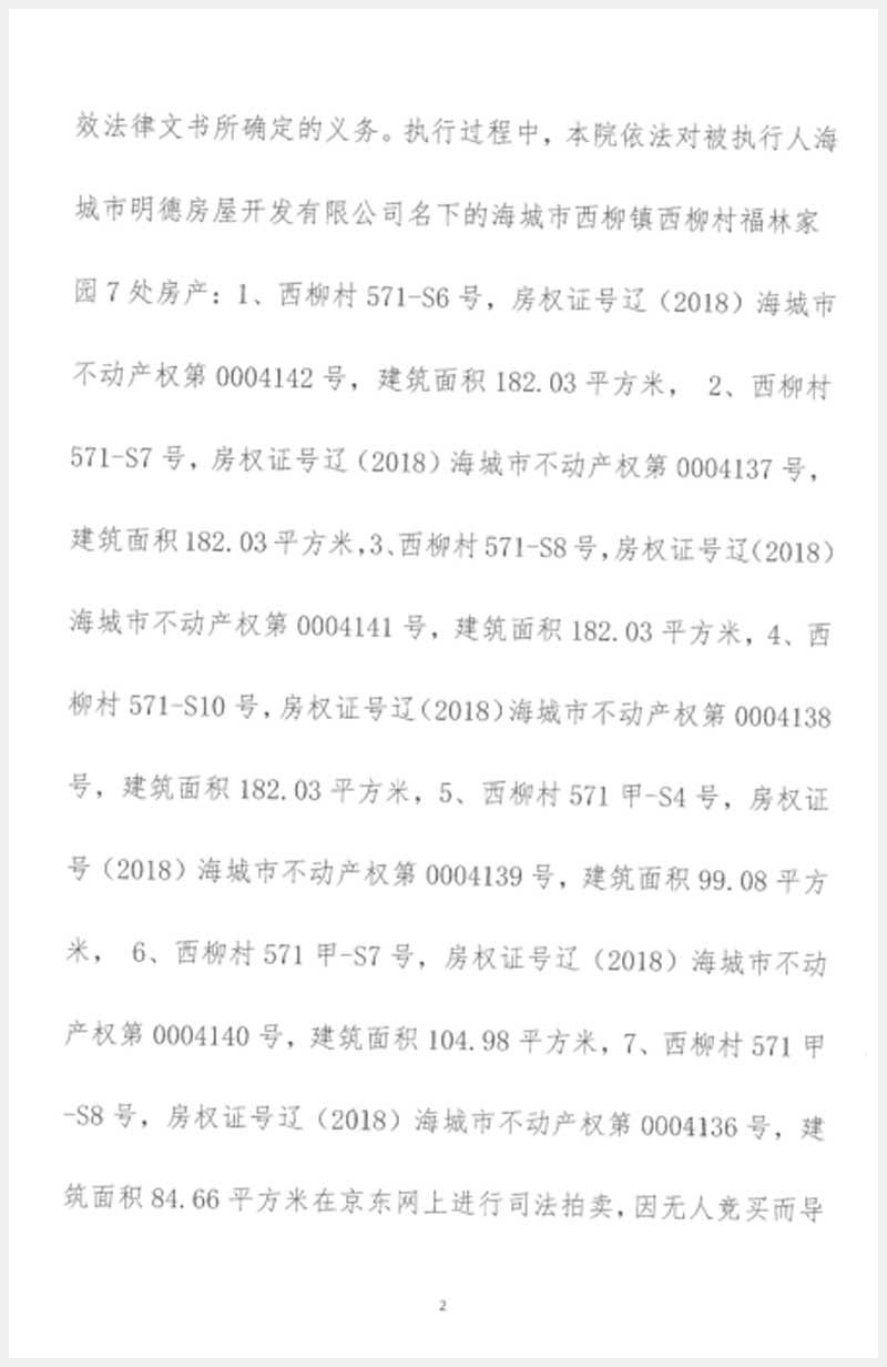 253號(hào) 海城市西柳鎮(zhèn)西柳村福臨家園7處房產(chǎn)