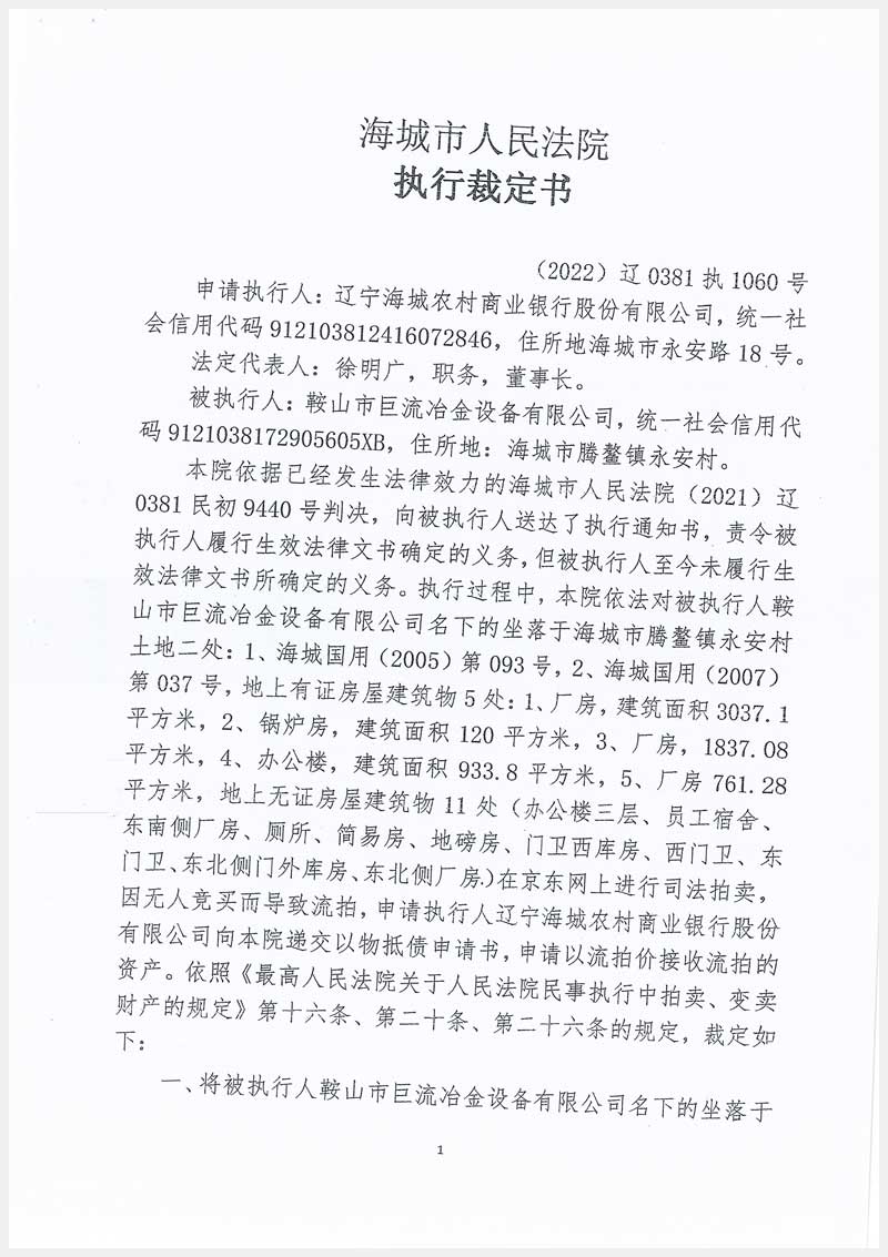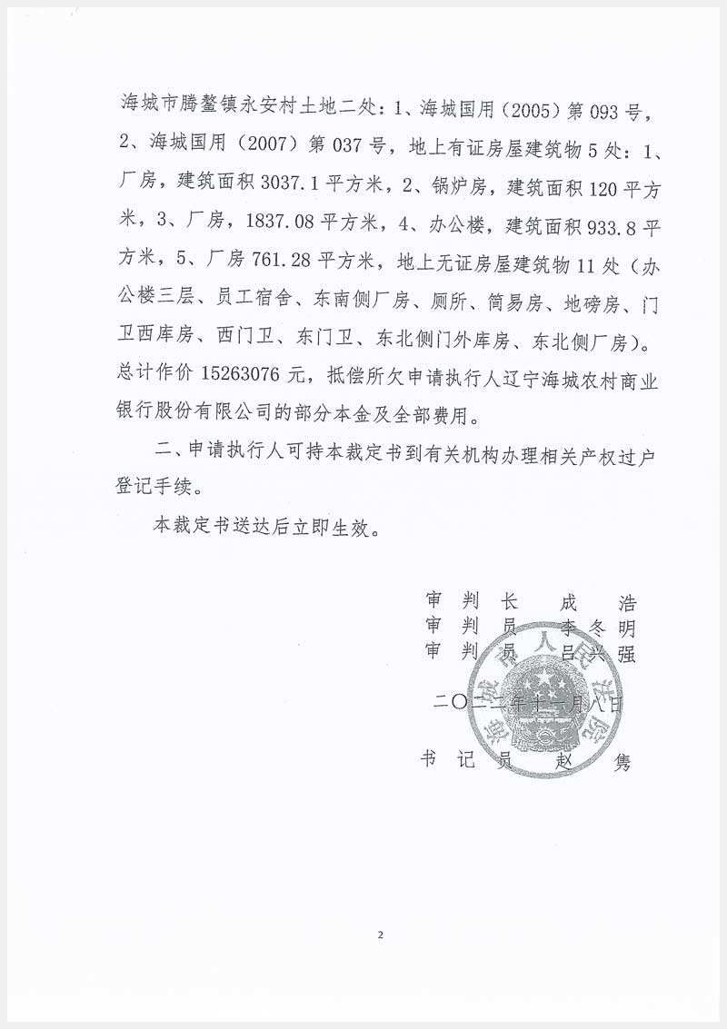 名稱:海城市騰鰲鎮(zhèn)永安村房產(chǎn)及土地使用權(quán) 面積:房產(chǎn):6689.26㎡;土地:34399㎡ 瀏覽次數(shù):1250