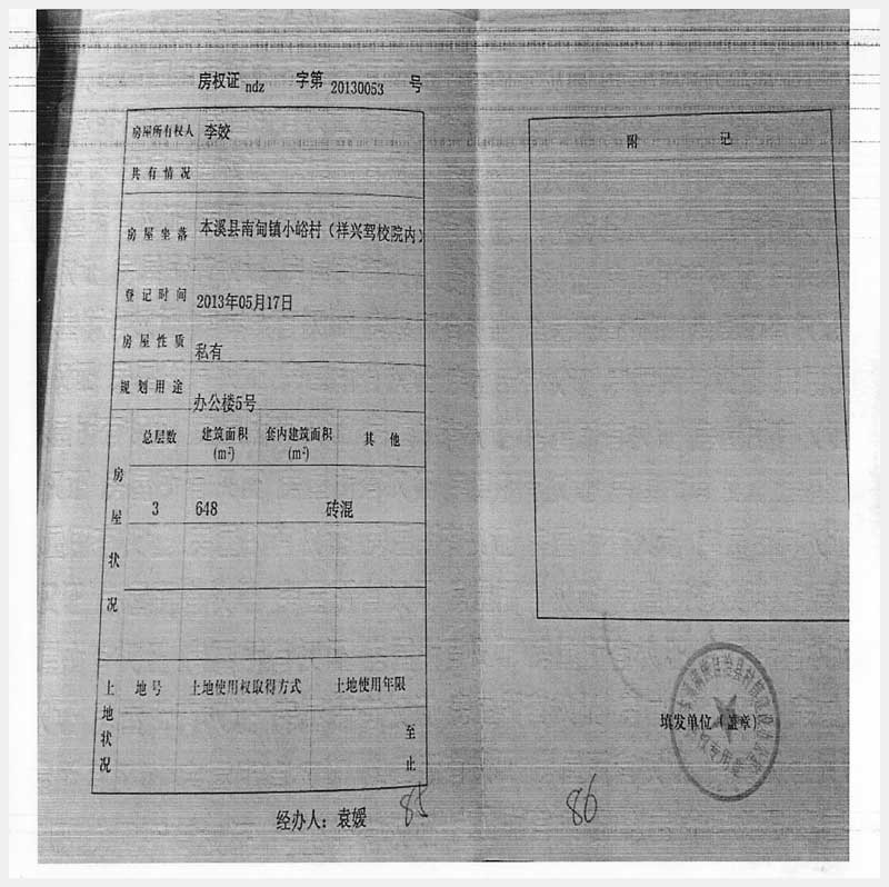 名稱:本溪縣南甸鎮(zhèn)小峪村(祥興駕校院內(nèi))房產(chǎn) 面積:4302.56㎡ 瀏覽次數(shù):506