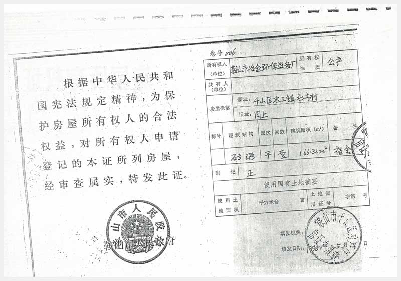 4號 鞍山市千山區(qū)宋三鎮(zhèn)永豐村廠(鐵西原九道街265號乙)房及集體土地使用權(quán)