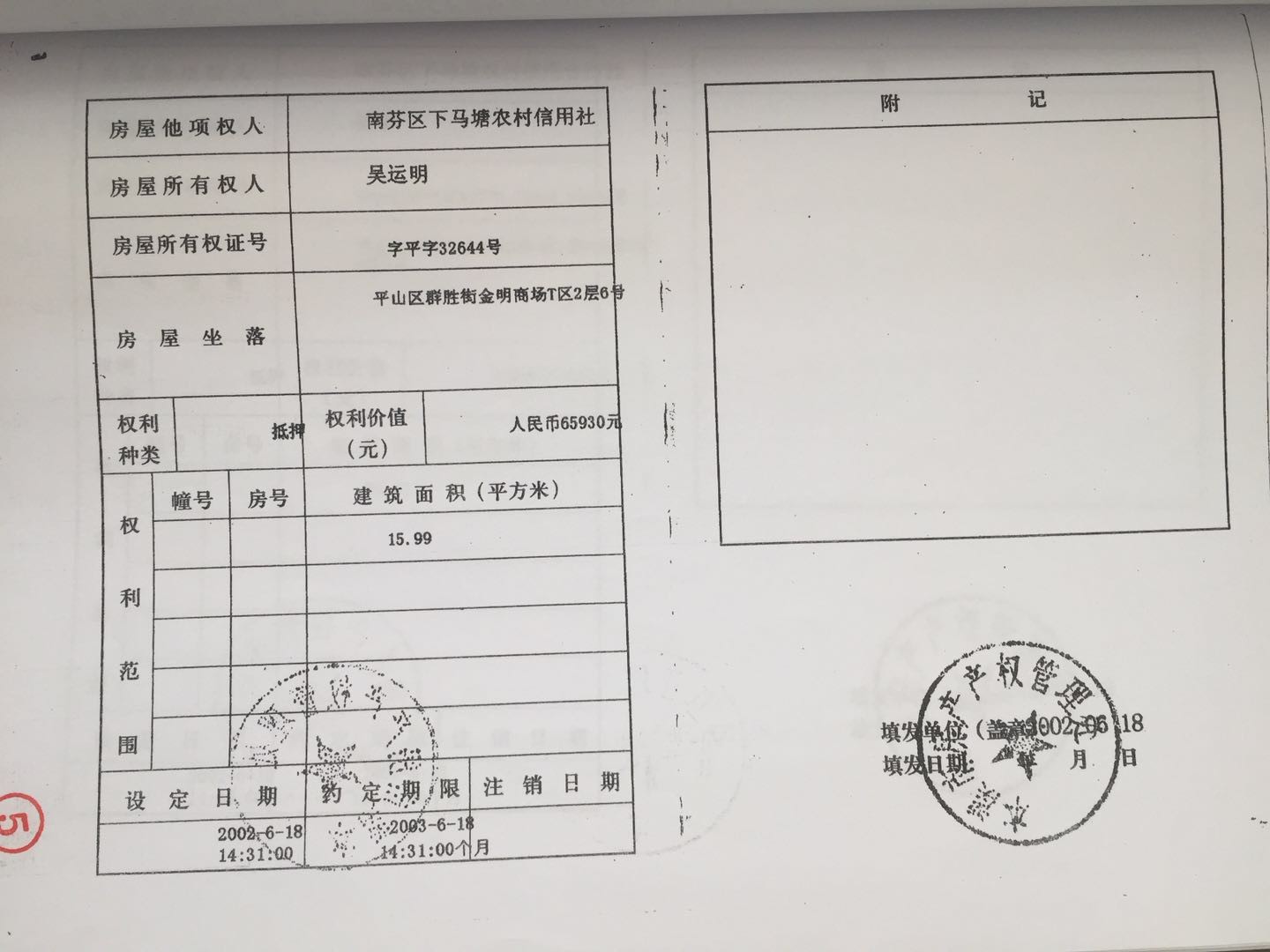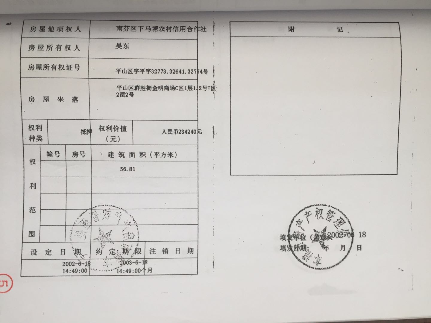 地址:平山區(qū)群勝街金明商場 標的號:25