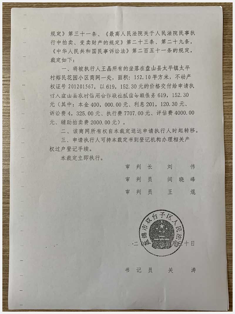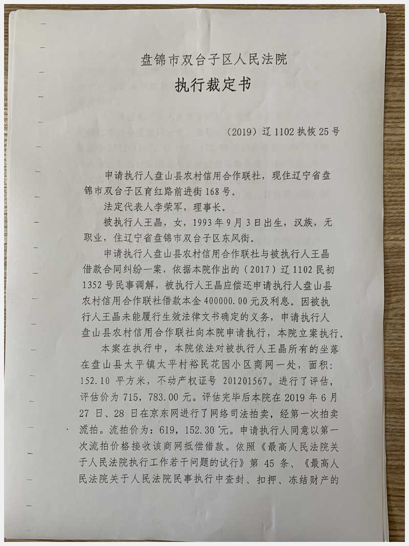 地址:盤錦盤山縣太平鎮(zhèn)太平村裕民花園小區(qū)4#(王晶) 標(biāo)的號(hào):29
