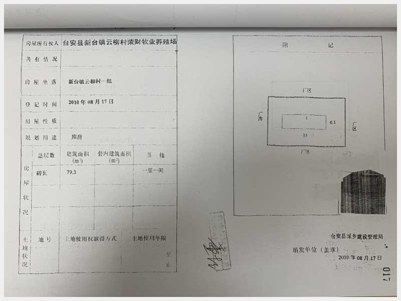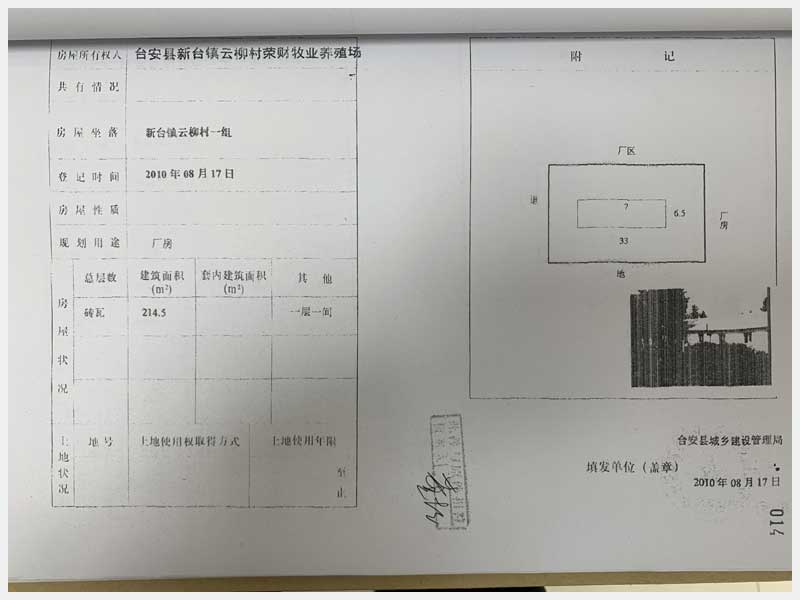 名稱:臺安縣新臺鎮(zhèn)云柳村1組房產(chǎn) 面積:房產(chǎn):2322.38㎡、土地:2500㎡ 瀏覽次數(shù):1334