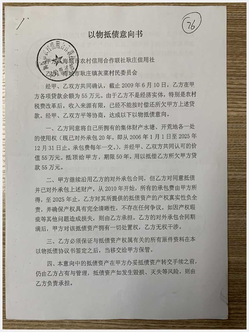76號(hào) 海城市耿莊鎮(zhèn)灰菜村水塘及開荒地使用權(quán)