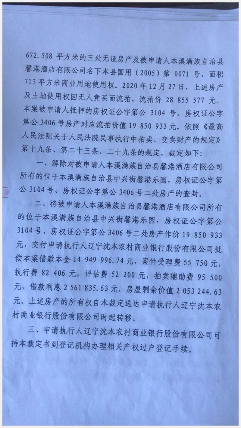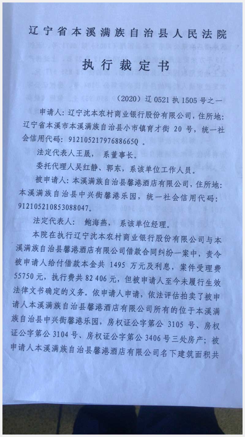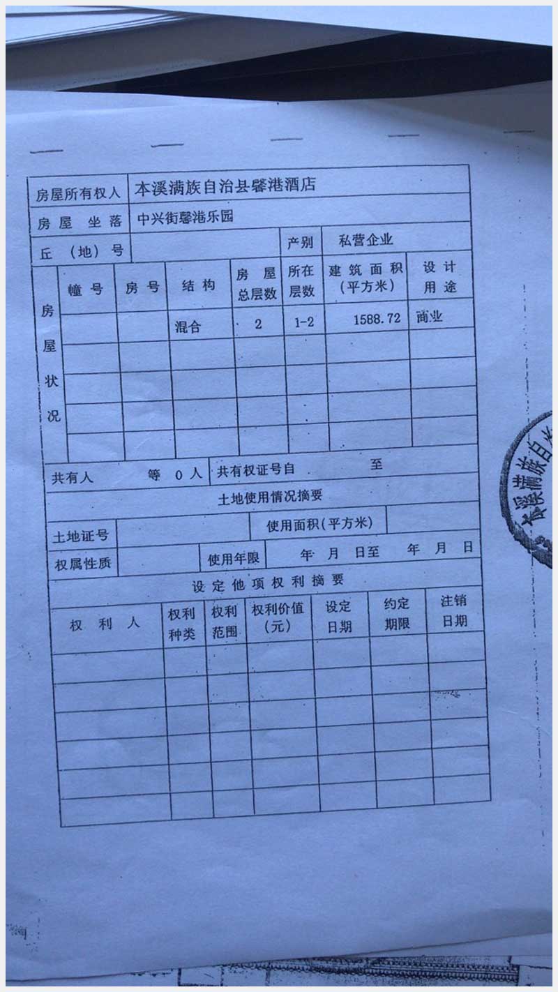 79號(hào) 本溪滿(mǎn)族自治縣中興街馨港樂(lè)園馨港酒店房產(chǎn)及土地