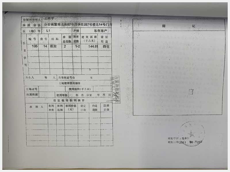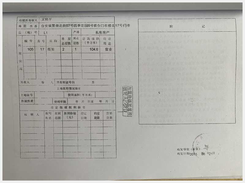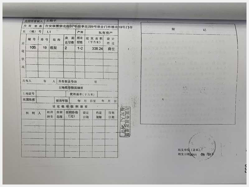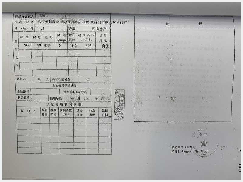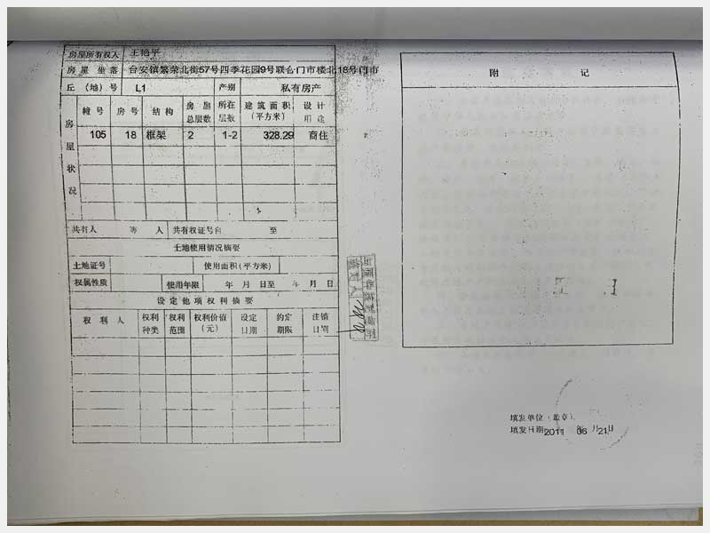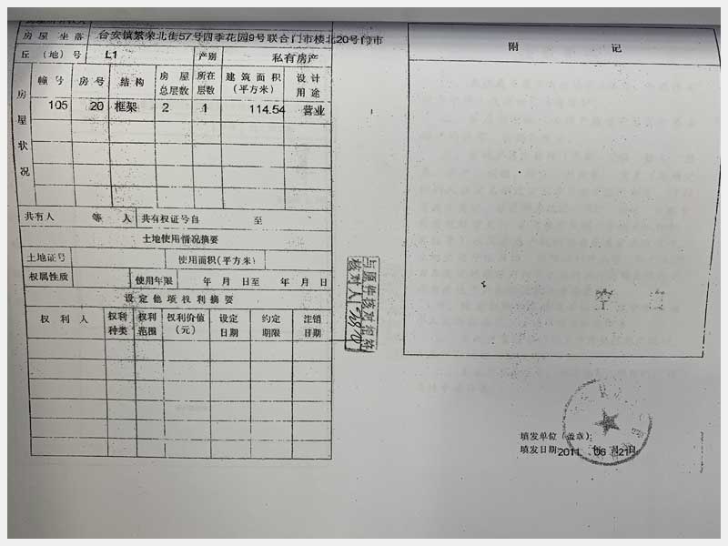名稱:臺(tái)安縣臺(tái)安鎮(zhèn)繁榮北街57號(hào)四季花園門市樓13、14、15、16、17、18、19、20號(hào) 面積:13號(hào):220.85㎡、14號(hào):144.81㎡、15號(hào):57.22㎡、16號(hào):326.01㎡、17號(hào):104.6㎡、18號(hào):328.29㎡、19號(hào):338.24㎡、20號(hào):114.54㎡ 瀏覽次數(shù):1523
