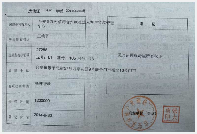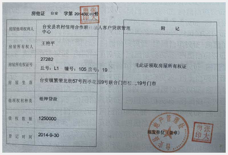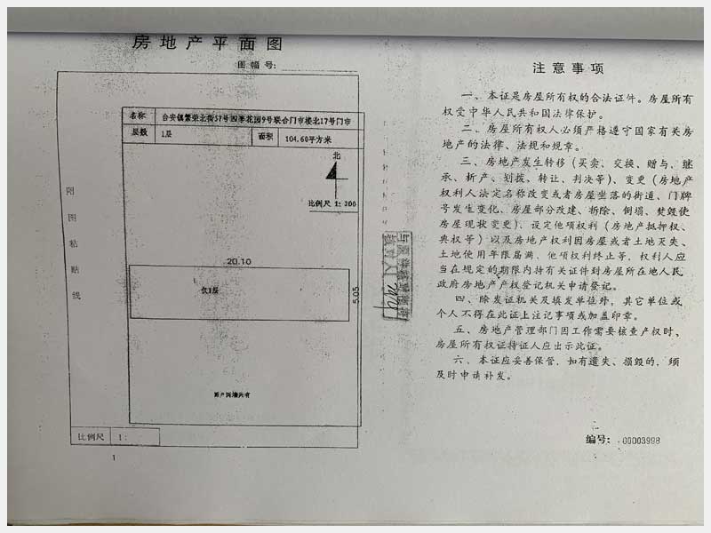 地址:臺(tái)安縣臺(tái)安鎮(zhèn)繁榮北街57號(hào) 標(biāo)的號(hào):70